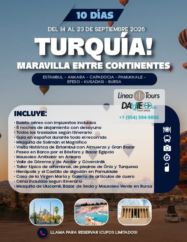 RESERVA TU PRÓXIMO VIAJE CON 350$ ¡Y EL RESTO LO PAGAS POCO A POCO! TOURS EN SEPTIEMBRE 2026 Abril 26 Mayo 26 Junio 26 Julio 26 Agosto 26 Septiembre 26 Octubre 26 Noviembre 26 Abril 26 Mayo 26 Junio 26 Julio 26 Agosto 26 Septiembre 26 Octubre 26 Noviembre 26 DEL 21 SEPTIEMBRE AL 08 DE OCTUBRE TODA LA INFO AQUÍ DEL 14 AL 20 DE SEPTIEMBRE TODA LA INFO AQUÍ DEL 08 AL 15 DE SEPTIEMBRE TODA LA INFO AQUÍ DEL 13 AL 23 DE SEPTIEMBRE TODA LA INFO AQUÍ DEL 04 AL 13 DE SEPTIEMBRE TODA LA INFO AQUÍ DEL 05 AL 15 DE SEPTIEMBRE TODA LA INFO AQUÍ DEL 25 SEPTIEMBRE AL 05 DE OCTUBRE TODA LA INFO AQUÍ DEL 02 AL 10 DE SEPTIEMBRE TODA LA INFO AQUÍ DEL 24 SEPTIEMBRE AL 01 DE OCTUBRE TODA LA INFO AQUÍ DEL 04 AL 11 DE SEPTIEMBRE TODA LA INFO AQUÍ DEL 14 AL 24 DE SEPTIEMBRE TODA LA INFO AQUÍ DEL 14 AL 23 DE SEPTIEMBRE TODA LA INFO AQUÍ DEL 01 AL 09 DE SETIEMBRE TODA LA INFO AQUÍ